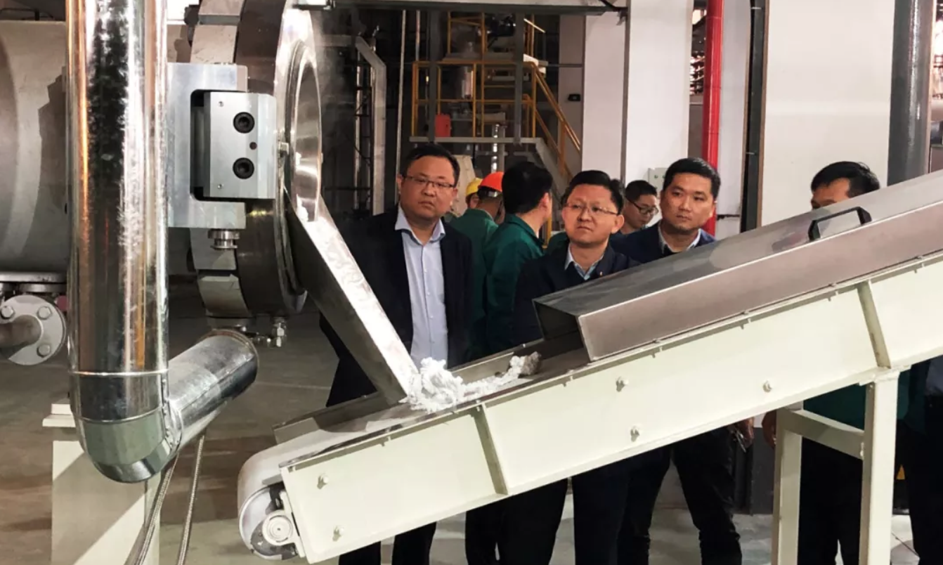 2019年11月21日,尤夫股份聯(lián)席總裁翁中華、化纖總經(jīng)理王尤輝在銷售總監(jiān)李敬之的陪同下,深入天花膜事業(yè)部,調(diào)研指導試機工作。